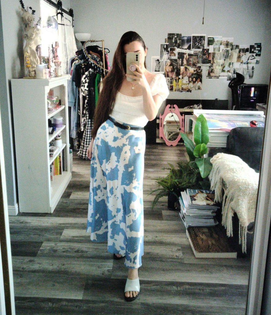 blue cow print cowgirl